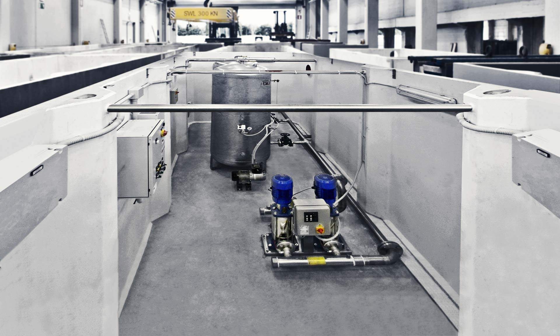 - Spare tank(s) to store water with a pressurisation system with preassembled submerged pumps with stainless steel pipes, valves and accessories certified for drinking water, a manifold system and autoclave system installed in compact technical rooms or ready to be installed in apartment buildings or various kinds of businesses.